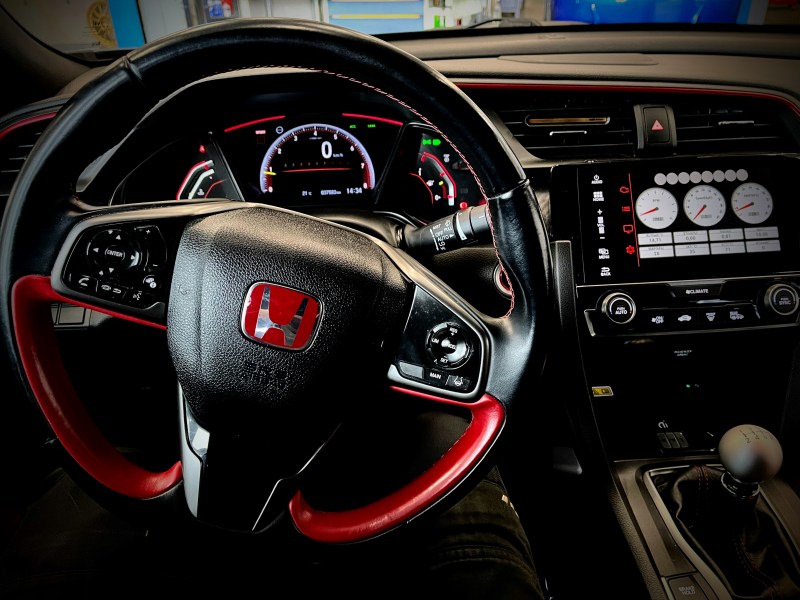 Auch optisch fügt sich dieses Upgrade farblich perfekt und harmonisch ins FK8‑Cockpit ein. Die Darstellung wirkt wie ab Werk integriert und passt sich nahtlos dem sportlichen Look des Type R an.